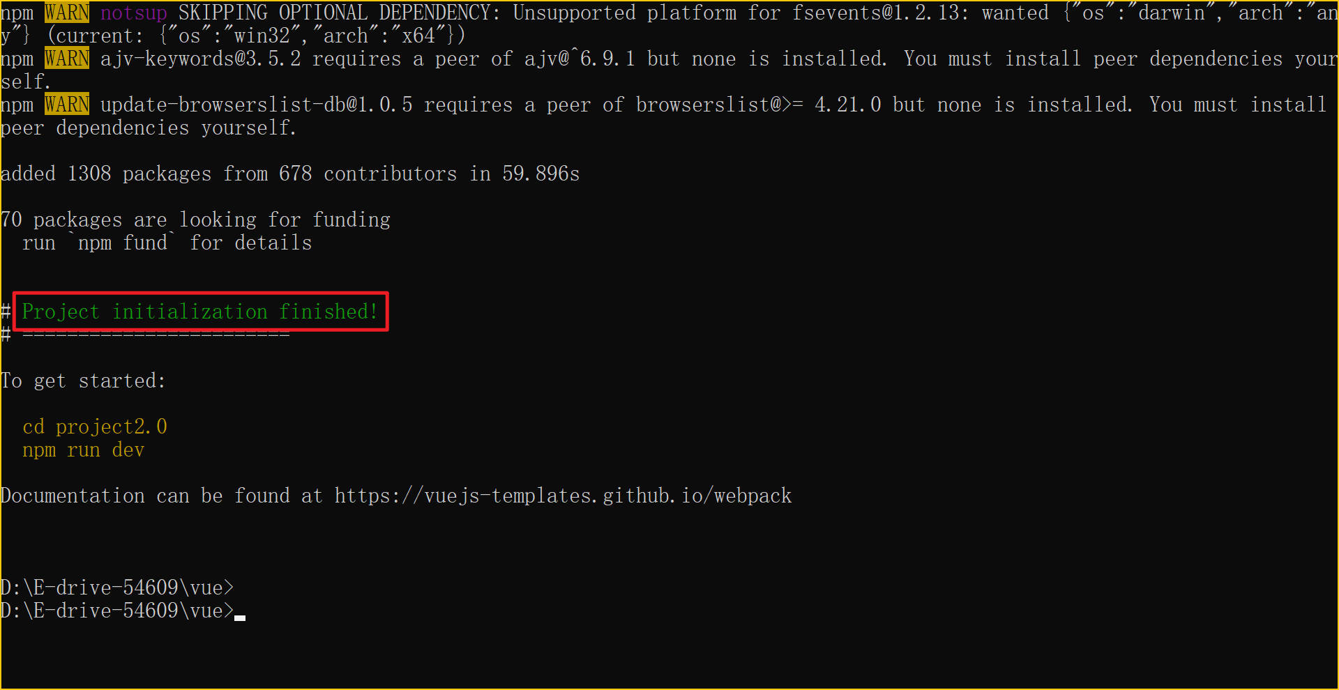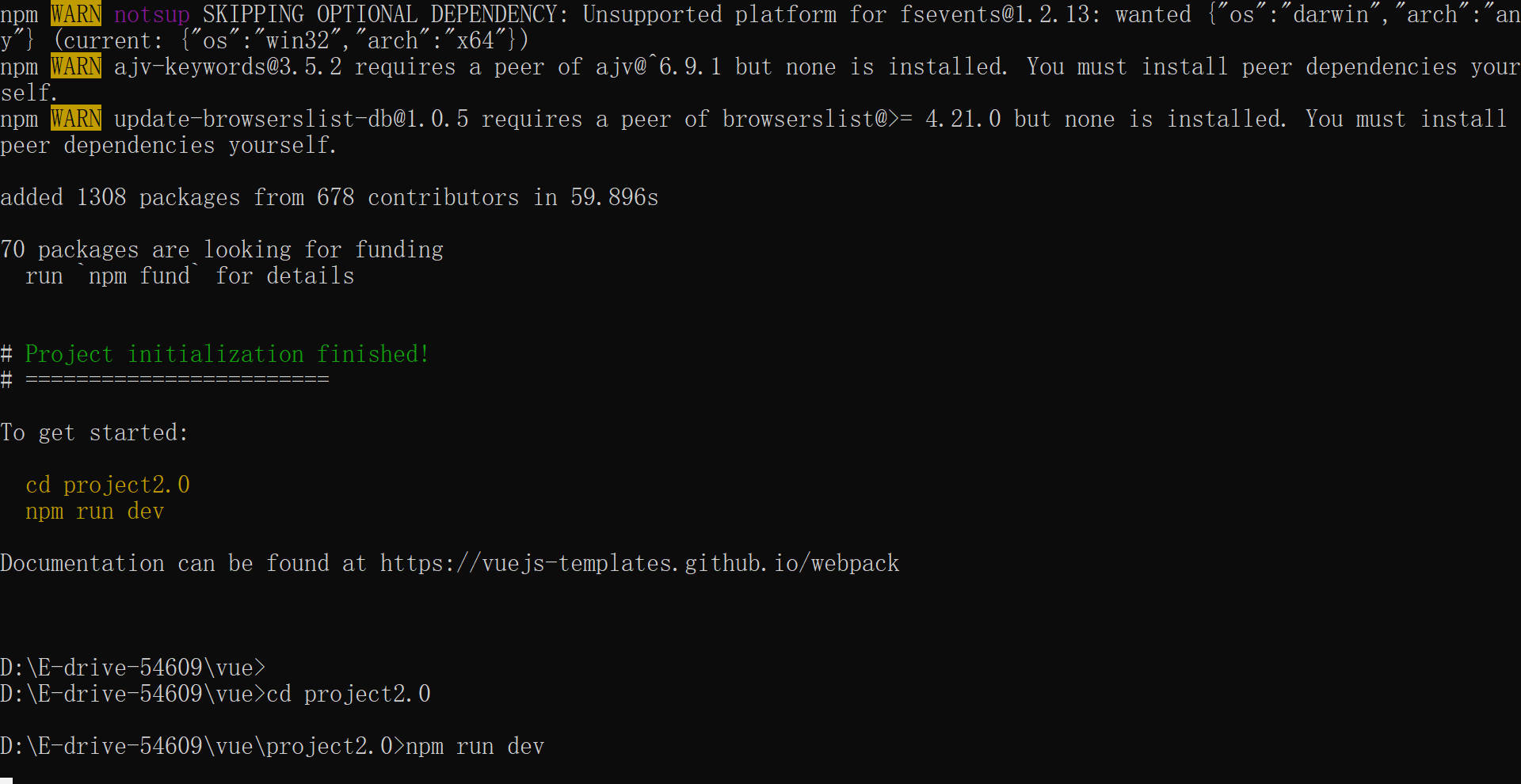 vue -cli2.x 版本的初始化方式,启动方式默认为 npm run dev ,webpack 为官方推荐模板