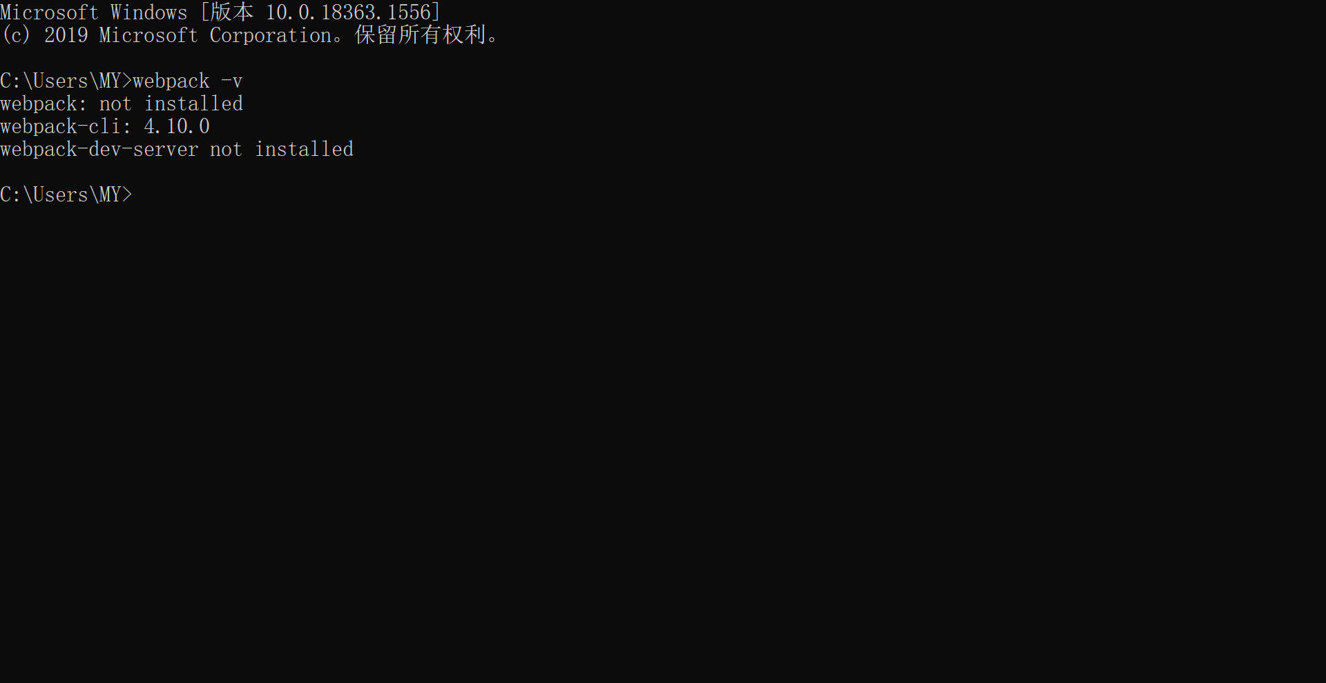 安装完成之后输入 webpack -v 出现版本号,成功